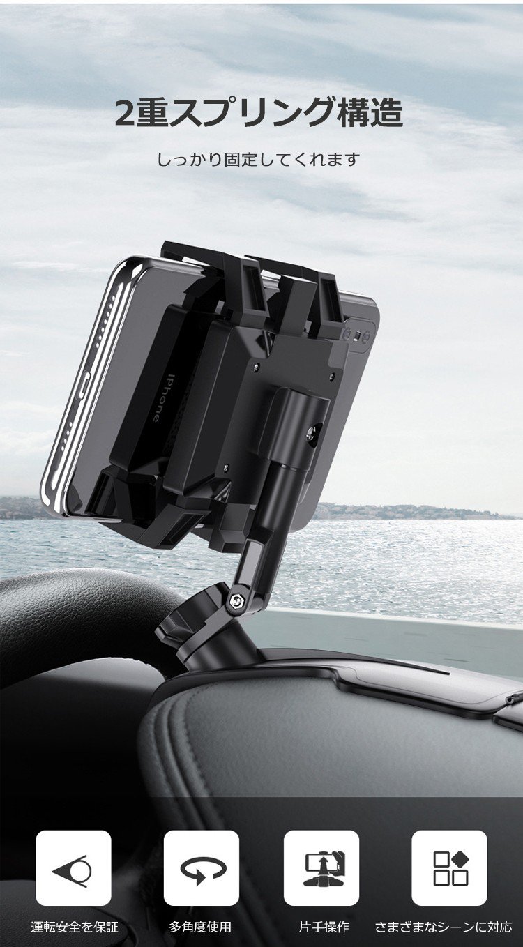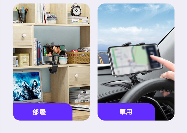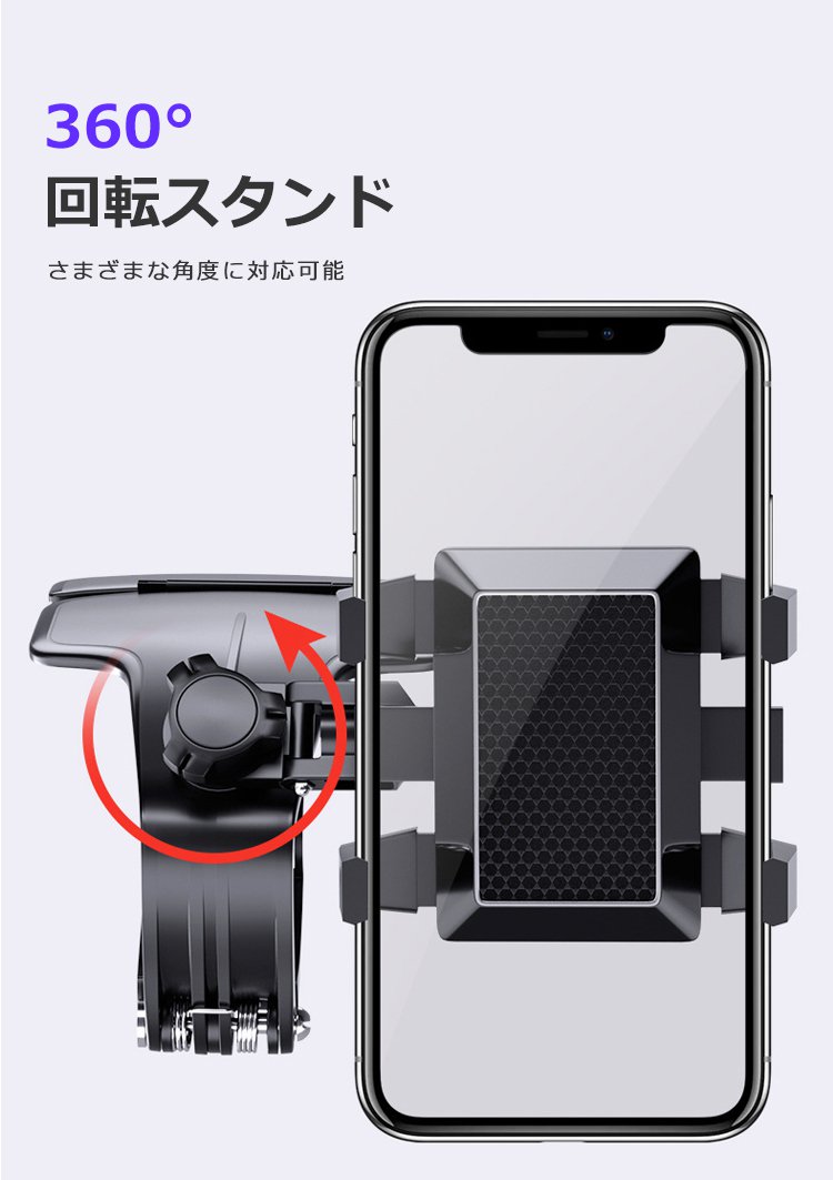 【車載スマホホルダー】360°自由自在な可動域を実現、 利便性抜群。車載スマホホルダーだけじゃない! 様々なシーンで大活躍!