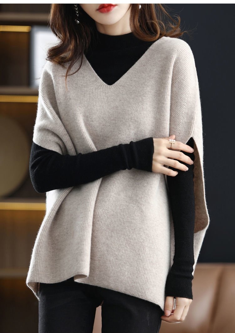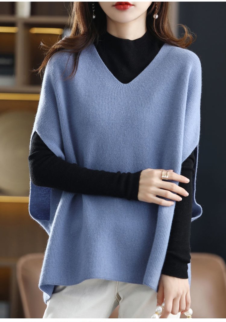 Vネックバットウィング・スリーブのウールベスト